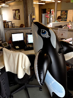 - I won an award at work. I mean, it was a little bit by default, but who's keeping track? The "trophy" for this award is a jumbo blow up whale (for "A Whale of an Idea"...clever) and it's hard to coexist with this thing in cubicle land.